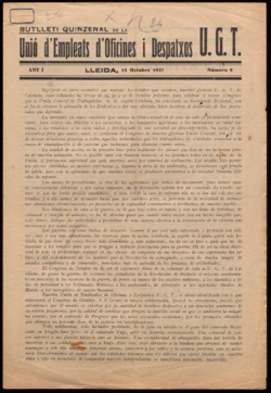 Butlletí quinzenal de la Unió d'Empleats d'Oficines i Despatxos UGT. 1937 setembre 30