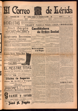 El Correo de Lérida. 1909 desembre 03